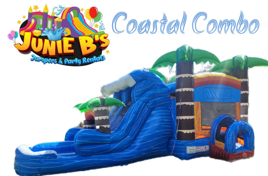 Whether you're hosting a birthday bash, company picnic, or neighborhood gathering, the Coastal Combo is the perfect addition to your event. Kids will love the thrill of racing down the dual lanes and making a splash at the front slide. With its coastal theme, this inflatable brings a touch of beachy vibes to any occasion.