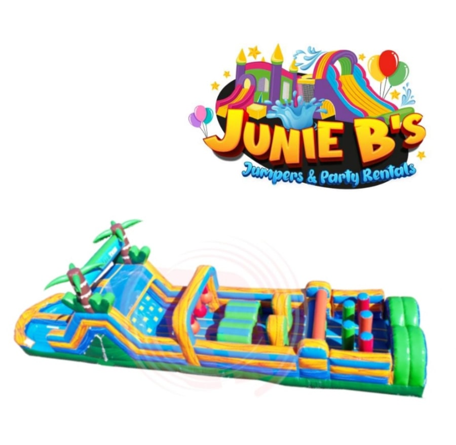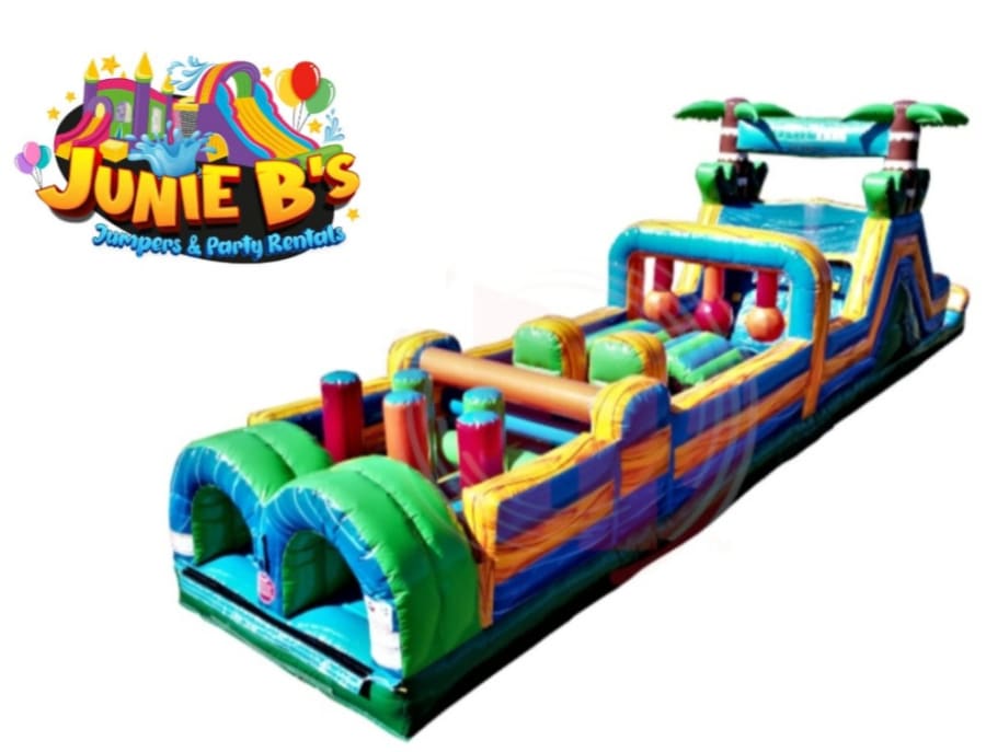 Are you ready to take on a thrilling challenge? Look no further than the 50' Jungle Trek obstacle course! This exciting inflatable course spans 50 feet, providing an exhilarating experience for participants of all ages.