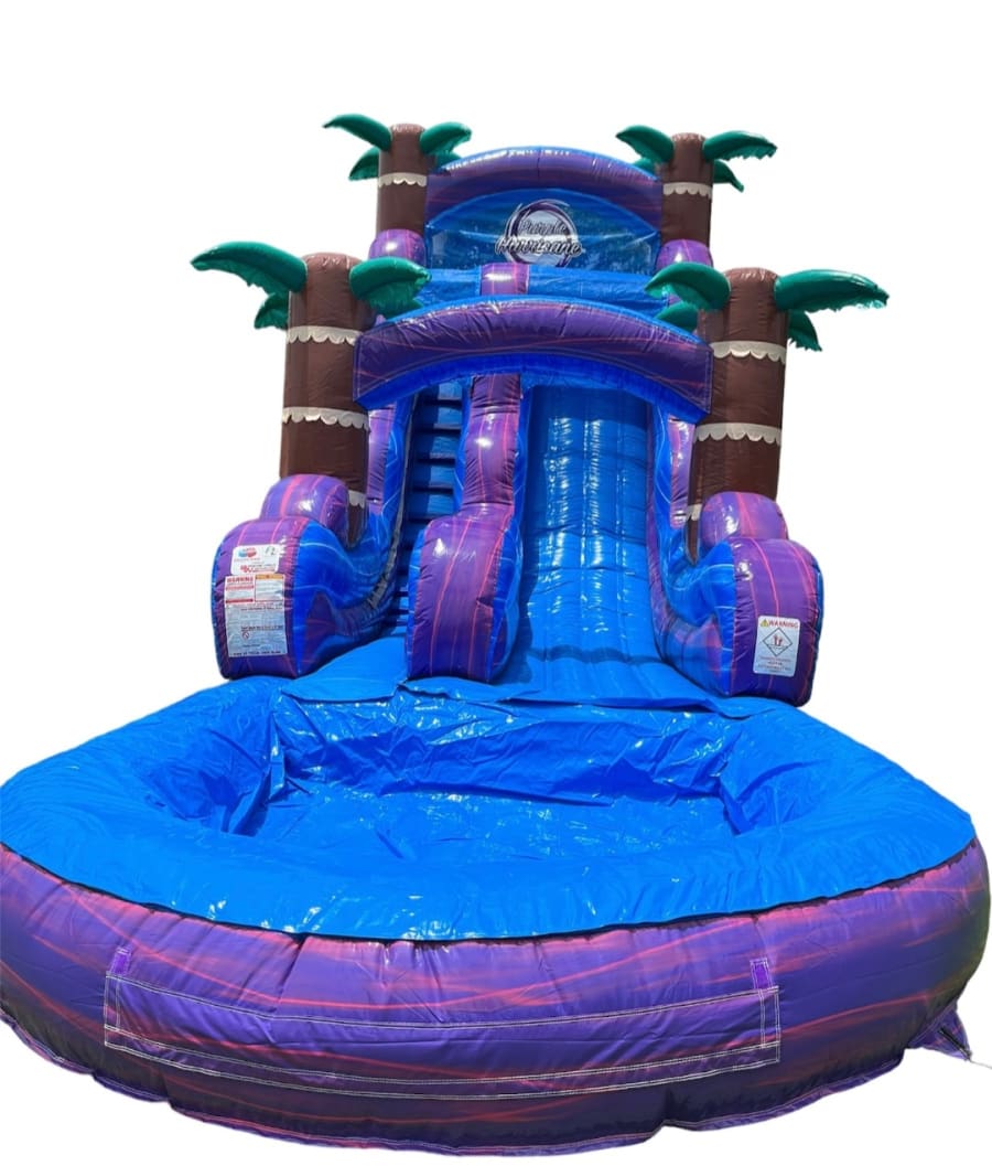 Experience the epitome of fun and excitement with our 18' Purple Hurricane Water Slide rental. This deep pool water slide is the perfect addition to any party or event, offering endless hours of entertainment for guests of all ages.