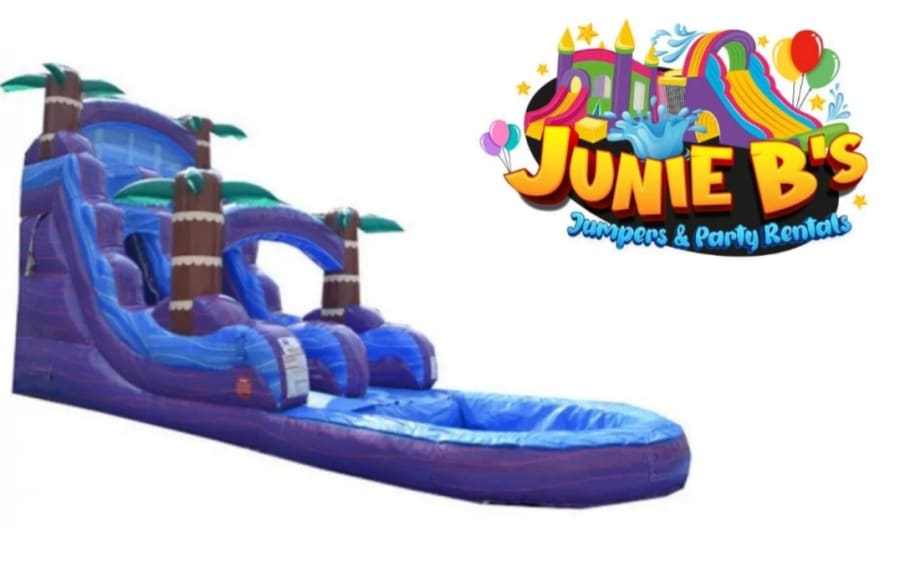 Bring the beach vibes to your backyard with this vibrant water slide that will make your event unforgettable. Whether you're hosting a birthday party, corporate event, or just want to add some excitement to your gathering, the 18' Purple Hurricane Water Slide is the perfect choice.