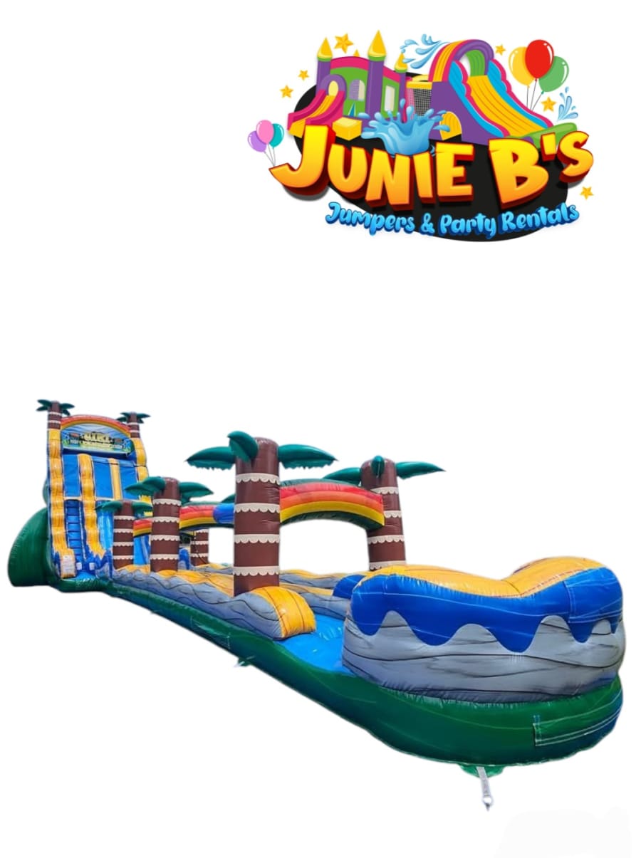 Whether it's a birthday party, school function, church gathering, or corporate event, the Tiki Plunge is sure to be the highlight. Imagine the joy on the faces of your guests as they experience the rush of sliding down from 27 feet high. This slide isn't just an attraction; it's a memory-maker!